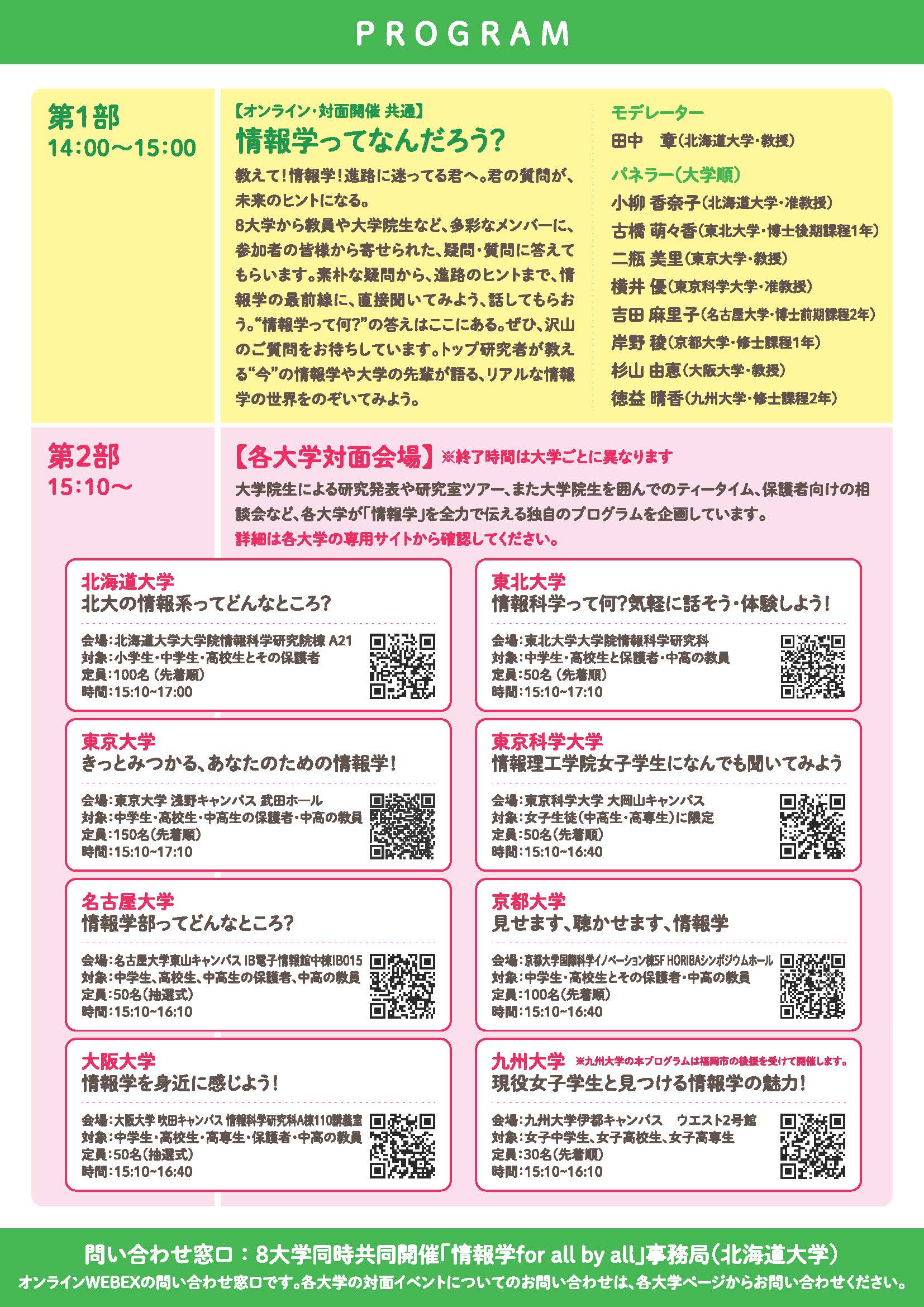 第1部のみのオンライン参加も可能です。第1部のオンラインはどなたでも(男子、女子、保護者の方、教員など)ご登録いただけます。