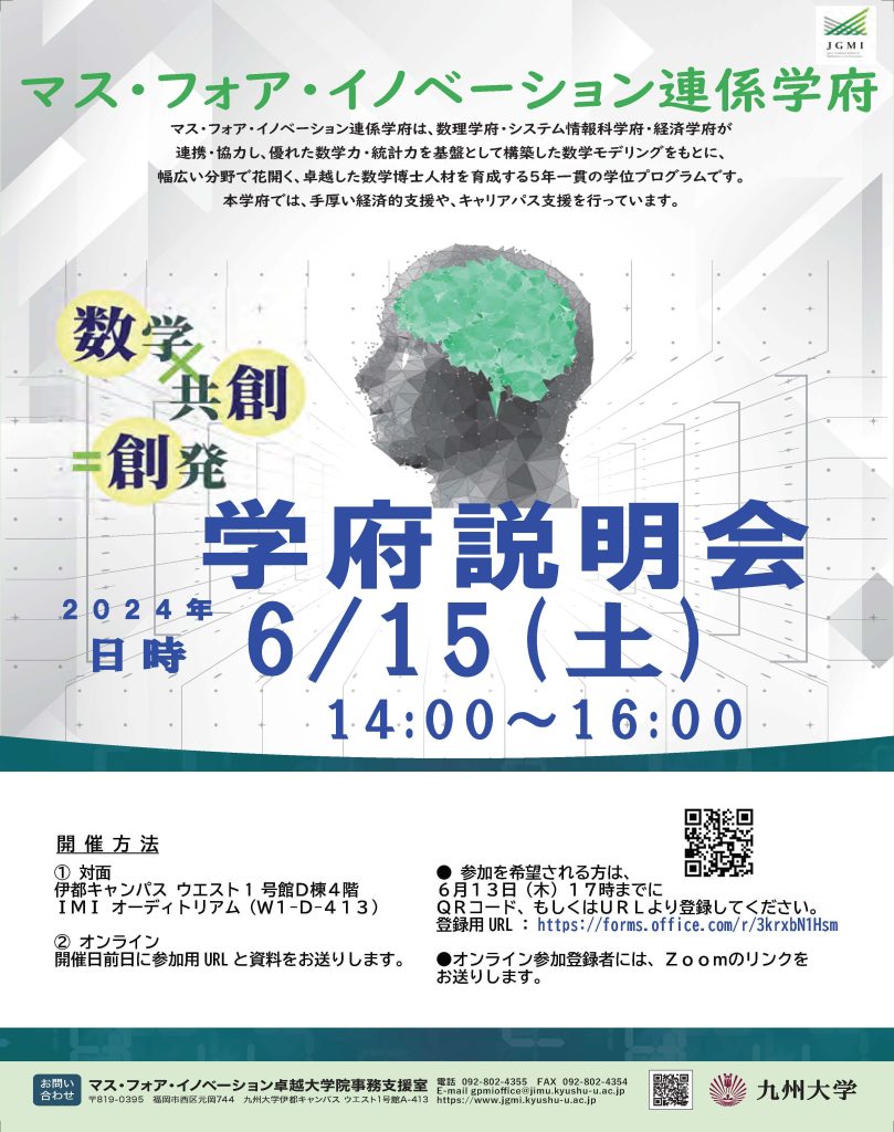 このたび、6/15(土)にマス・フォア・イノベーション連係学府の説明会が開催されることとなりました。